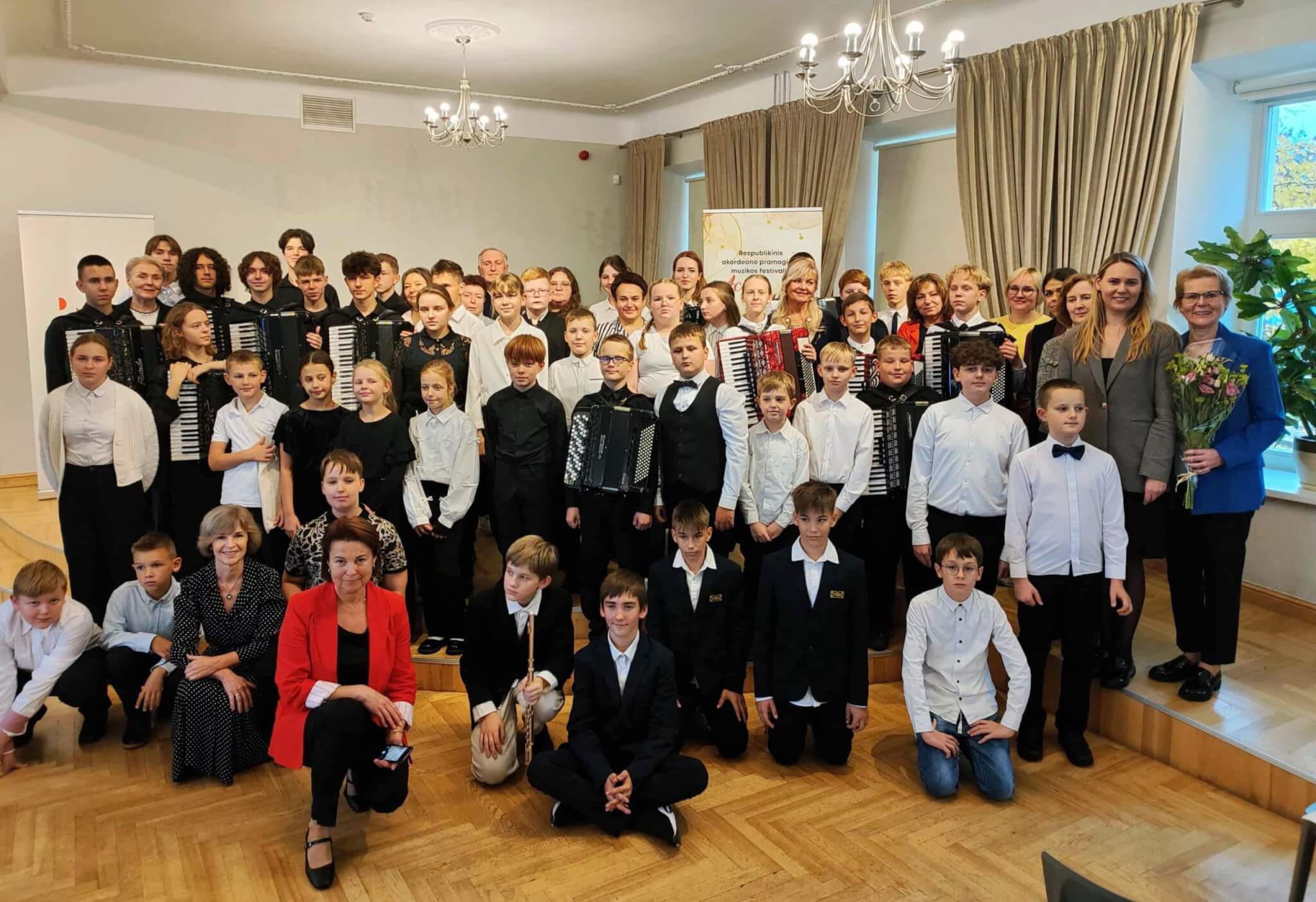 Spalio 18 dieną Trakų meno mokykloje skambėjo akordeono garsai – čia vyko jau penktasis respublikinis akordeono pramoginės muzikos festivalis „ACCORUDUO 2025“. Renginys sukvietė 45 jaunuosius akordeonistus iš dešimties Lietuvos meno ir muzikos mokyklų. Dalyvius festivaliui paruošė net 18 mokytojų, kurių bendras darbas, kūrybiškumas ir meilė muzikai virto švente bei puikia proga pristatyti savo pasiekimus, pasimokyti vieniems iš kitų, pasisemti įkvėpimo ir patirti akordeono muzikos grožį.