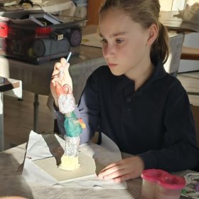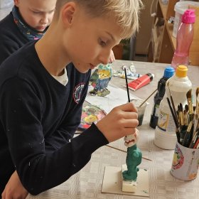 Helovyno nuotaika užpildė tiek dailės, tiek šokio pamokas – mokiniai kūrė šmaikščias, šmėkliškas figūras, naudodami įvairias technikas ir medžiagas.