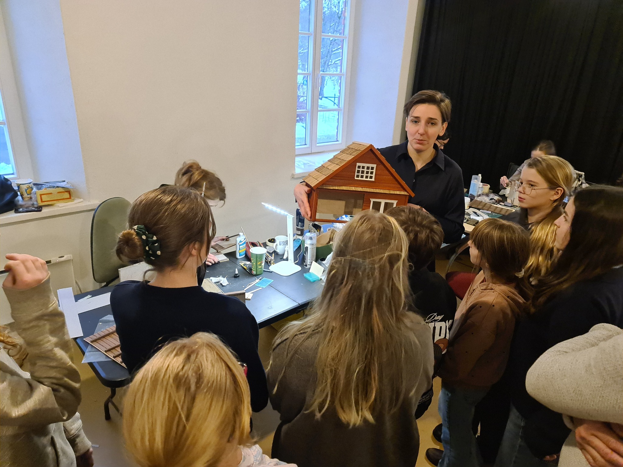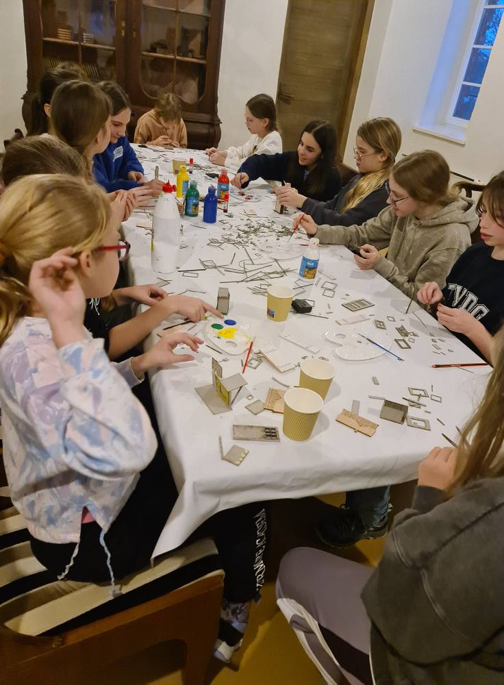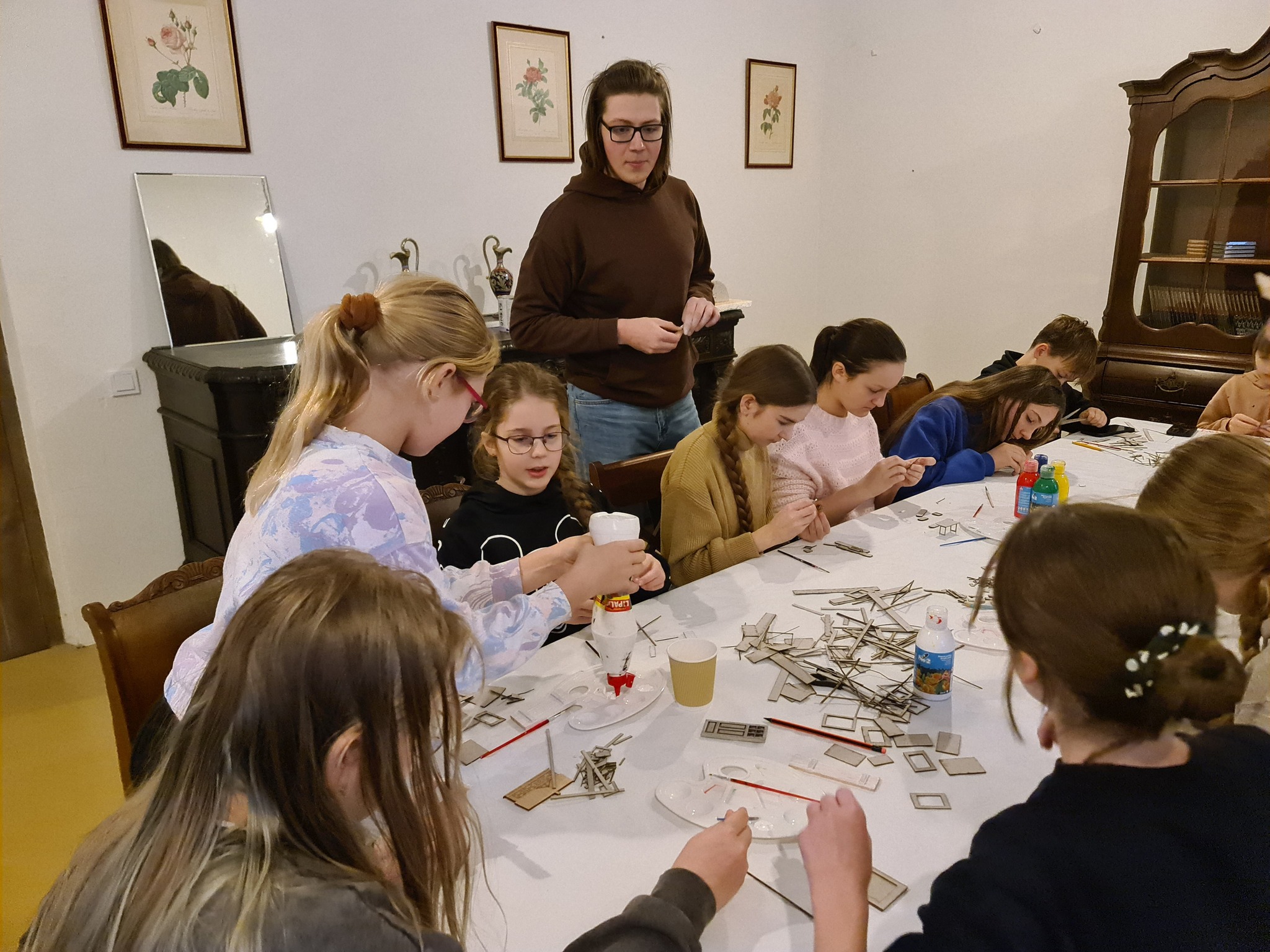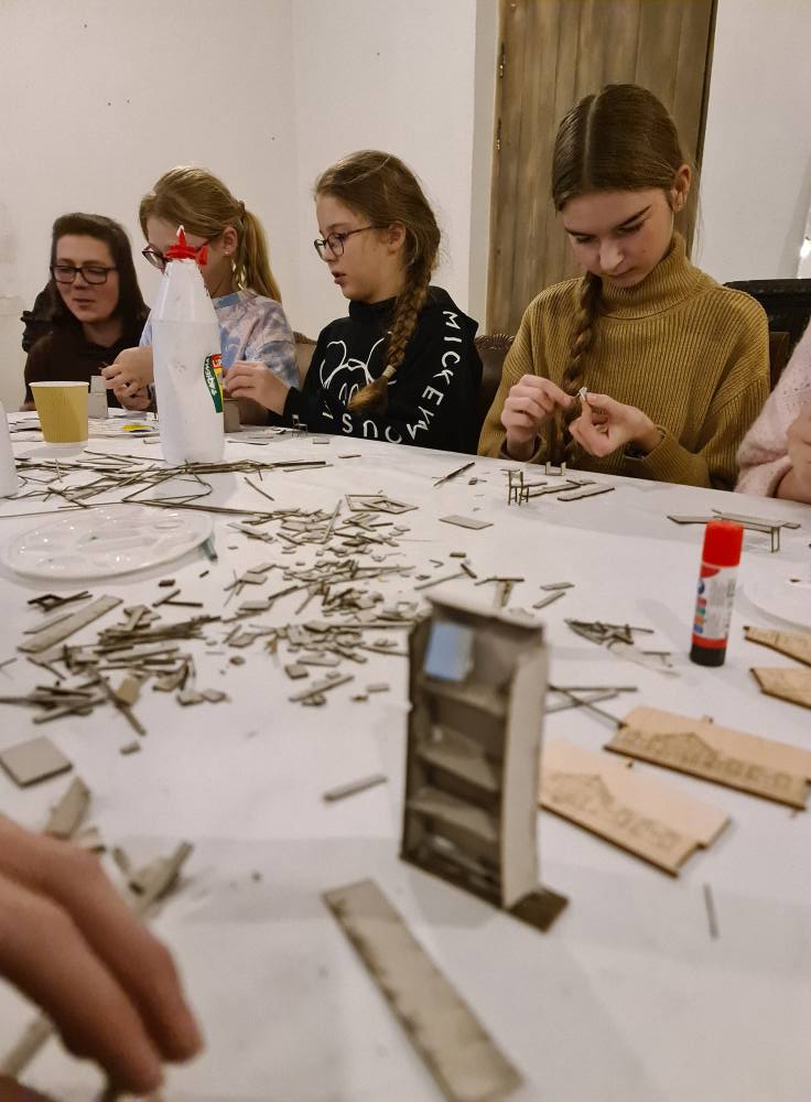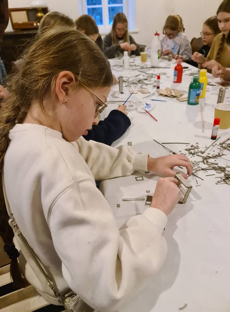 Trakų meno mokyklos 13 jaunųjų dailininkų taip pat turėjo progą prisidėti prie kūrybinio proceso. Iš lazeriu pjautų detalių likučių jie gamino miniatiūrines spinteles, skryneles ir kitus daiktus, kurie ateityje galėtų tapti scenografijos ar animacijos elementais. Kūrybiškumas liejosi laisvai – per dvi valandas niekam neprireikė nė pertraukos!