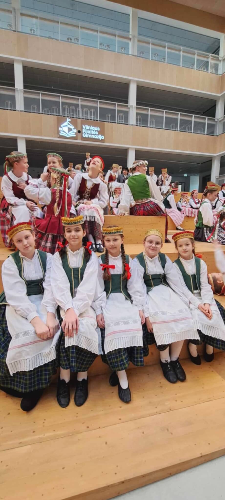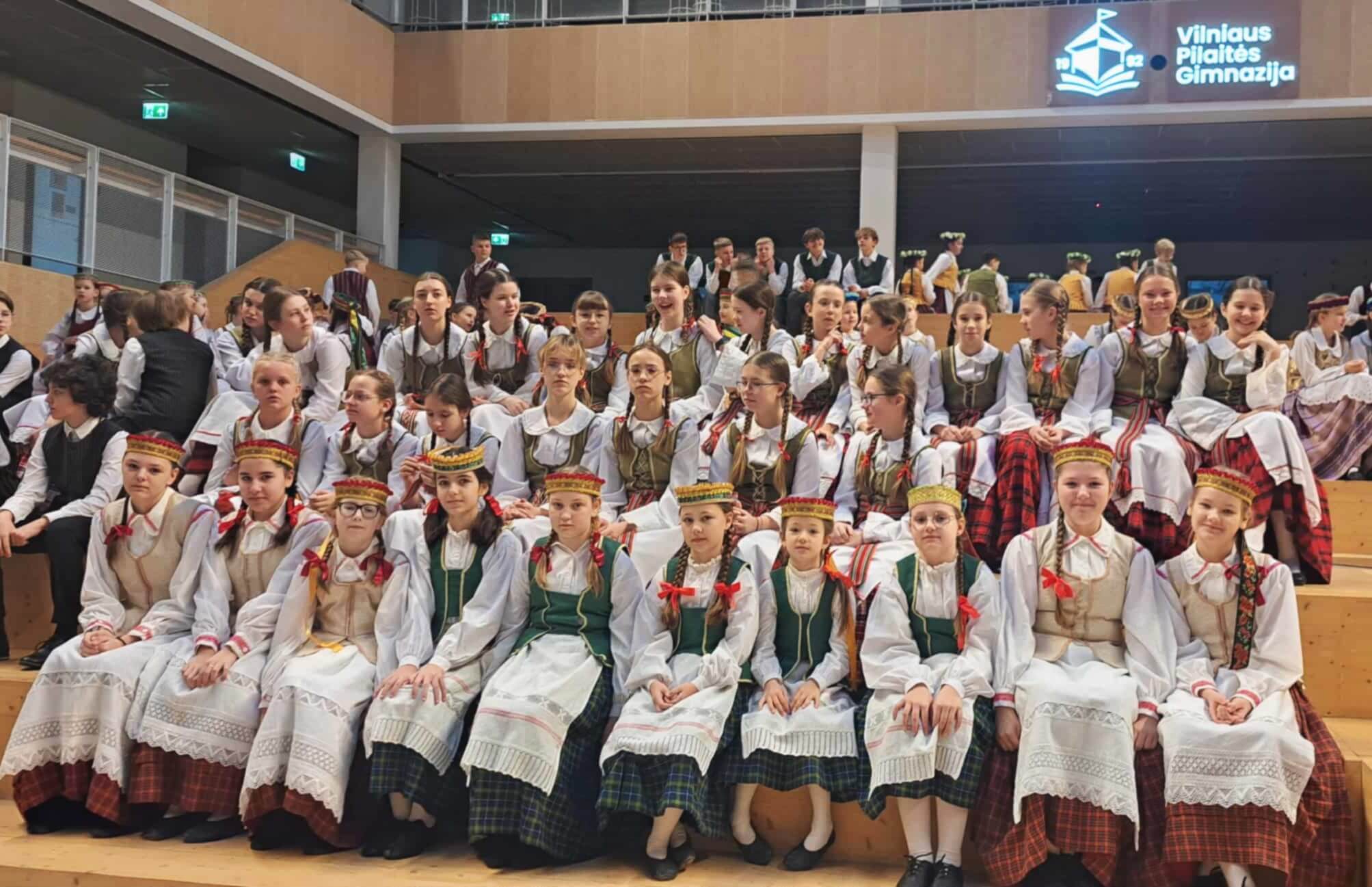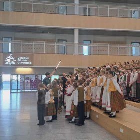 Praėjusį sekmadienį Trakų meno mokyklos Lentvario skyriaus šokėjos buvo tarp 250 šokėjų, kurie dalyvavo Lietuvos moksleivių dainų šventei skirto informacinio klipo filmavime. Daugybę kartų sudainuota ta pati frazė, ilgai stovėta tarp kitų tautiniais kostiumais pasipuošusių, judrių vaikų, daug aiškinimų ir prašymų – visa tai vargino. Tačiau nuojauta, kad vyksta kažkas neeilinio ir svarbaus, neleido atsipalaiduoti ir nuobodžiauti. Didžiuojuosi mūsų mergaitėmis, be galo dėkinga tėveliams, kad sudalyvavome – buvome gal tik fonas, bet gražus ir reikalingas. Kaip viskas atrodys filmuke, pamatysime – turėtų būti gražu. Laukiame Moksleivių dainų šventės „Laiku ratu kartu“.