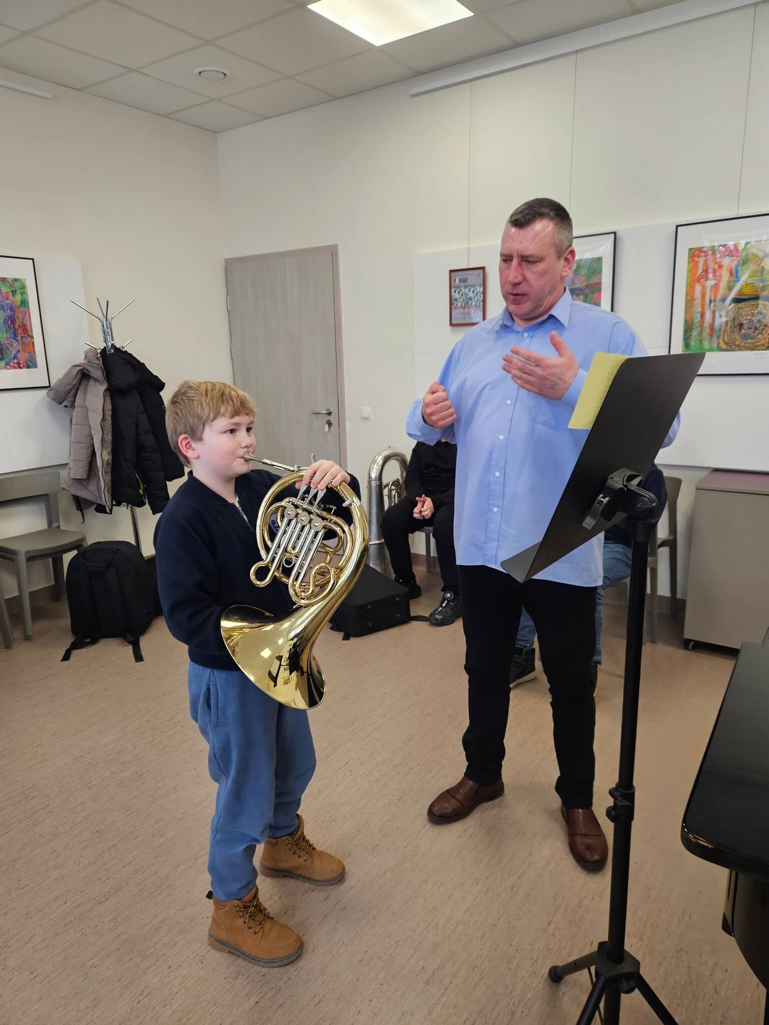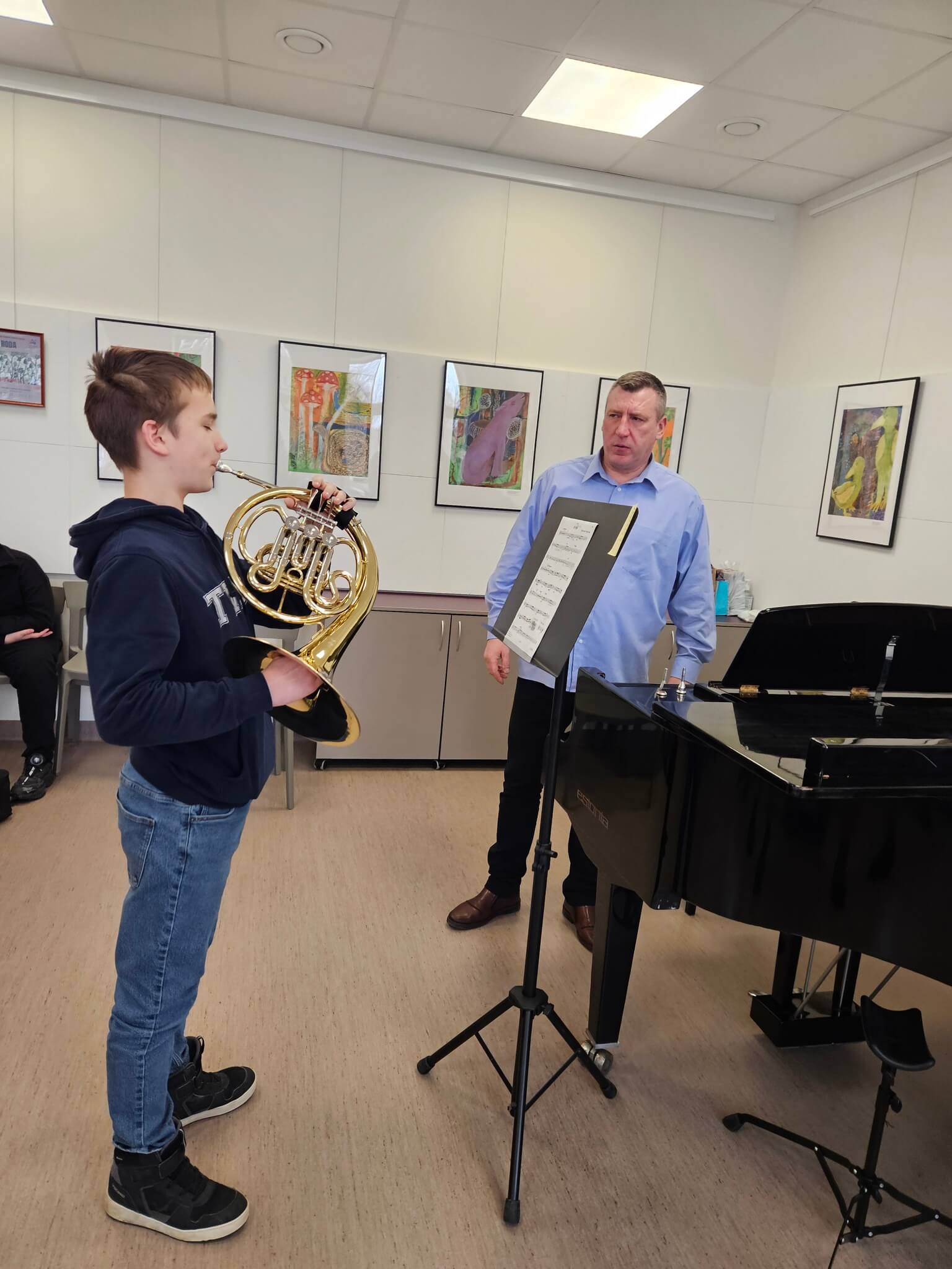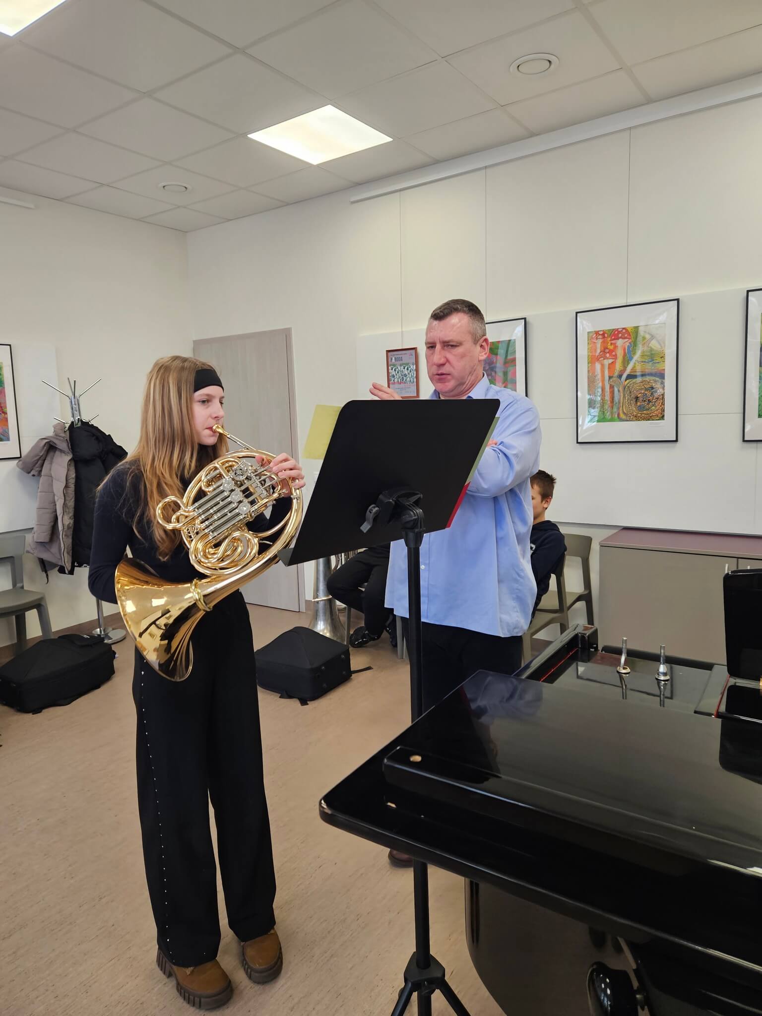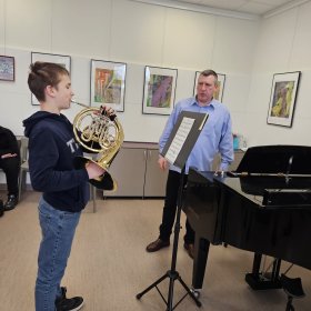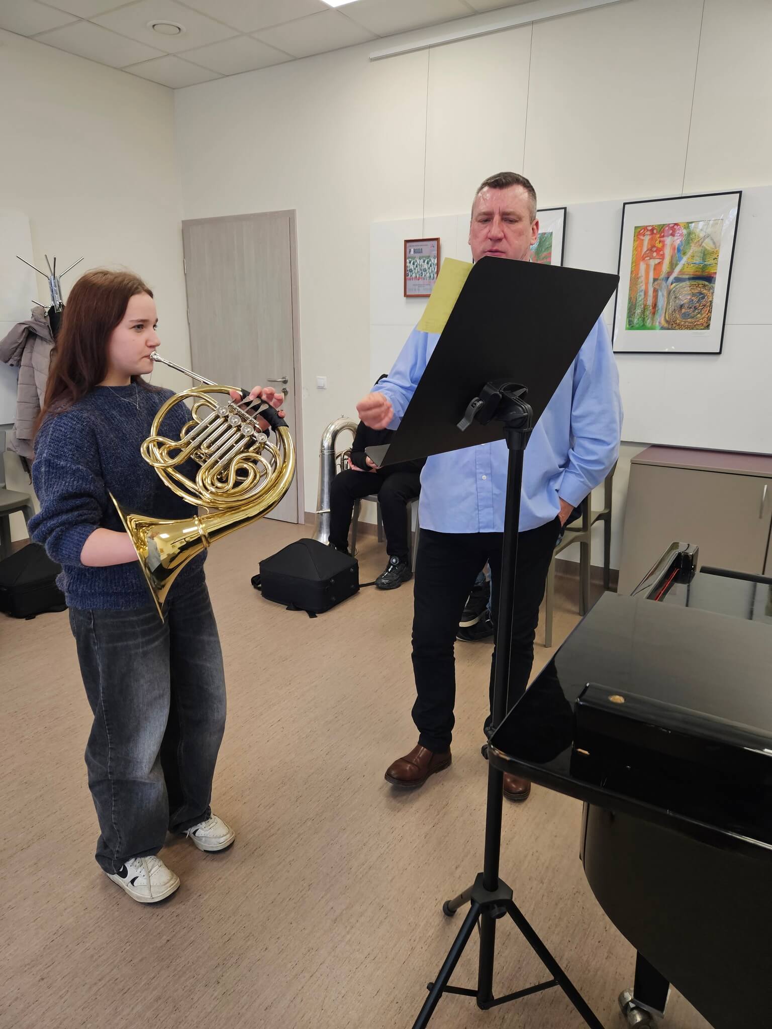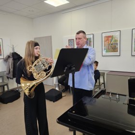 2026 m. vasario 27 d. Trakų meno mokykloje įvyko prasmingas profesinis susitikimas, subūręs Vilniaus Karoliniškių muzikos mokykla ir Trakų meno mokyklos valtornos mokytojus metodininkus – Paulių Lukauską ir Indrę Kuleševičienę.